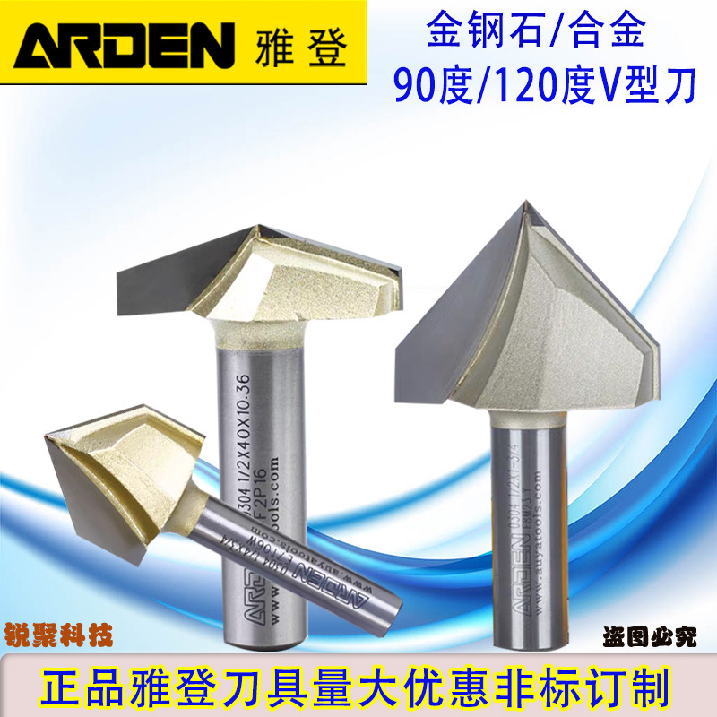 雅登90度V型刀修边机木工刀斜边倒角刀金钢石120度雕刻刀铣刀钨钢
