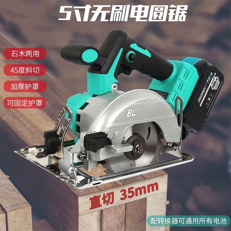 Gergaji bundar listrik Lithium 5 inci, gergaji listrik portabel, mesin pemotong lithium elektrik dengan sikat 125 tangan tunggal, mesin pemotong batu dan kayu penggunaan ganda Mu Tian