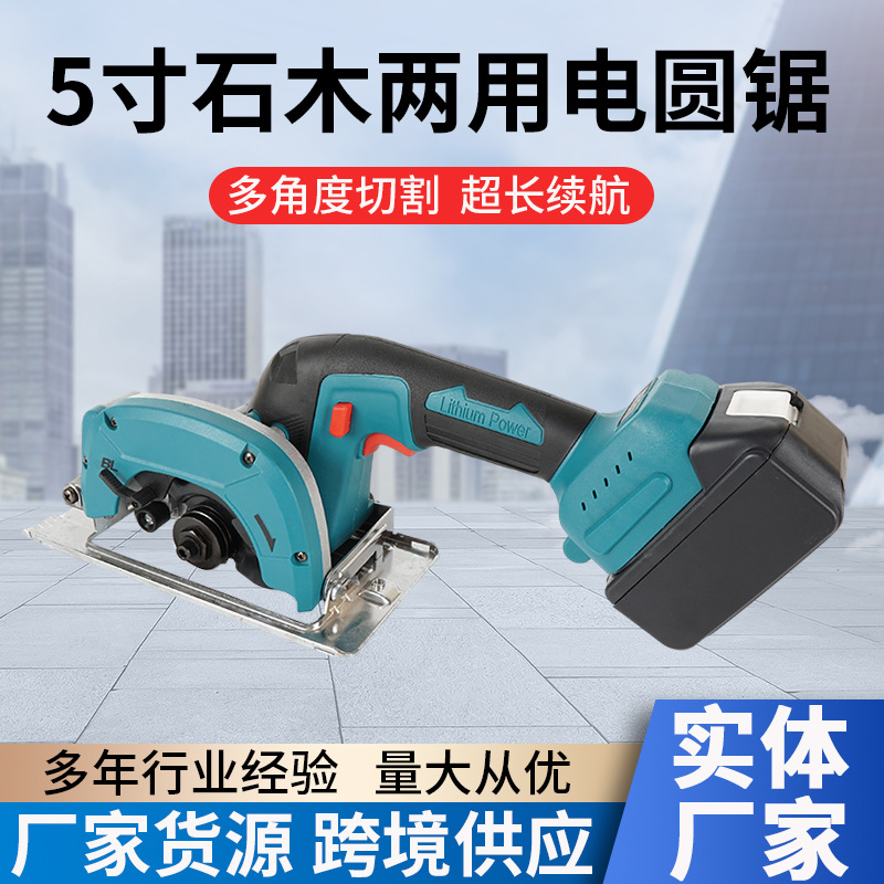 Gergaji bundar listrik Lithium 5.5 inci, gergaji tiang datar daya tinggi dapat diisi ulang, mesin marmer pekerjaan kayu gergaji listrik portabel tunggal