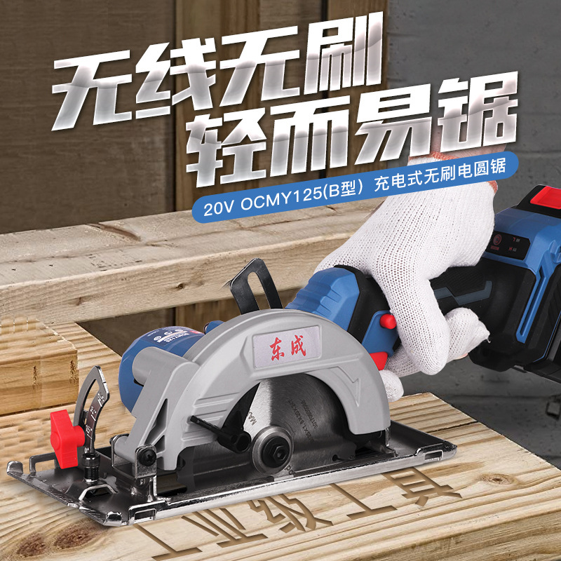 Dongcheng gergaji bundar listrik Lithium, mesin pemotong tangan tekan tangan gergaji bundar tanpa sikat dapat diisi ulang DCMY140 5 inci 125