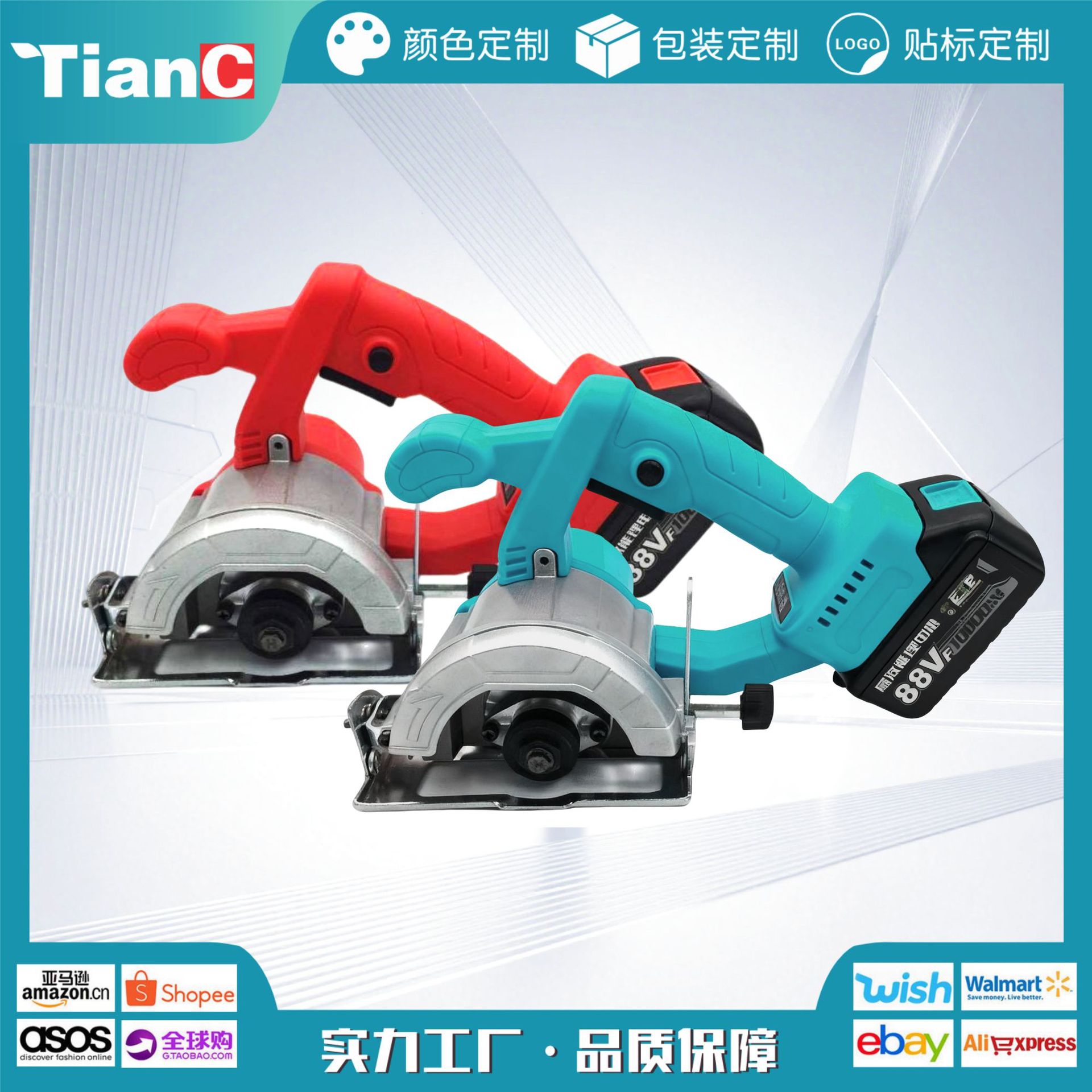 TianC gergaji bundar listrik mesin pemotong batu Lithium listrik pertukangan kayu template pekerja pekerjaan kayu profesional alat listrik grosir