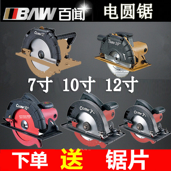 Baiwen gergaji bundar elektrik 7 inci, gergaji listrik meja terbalik 9 inci, alat pertukangan listrik, gergaji listrik daya tinggi 8 inci mesin pemotong