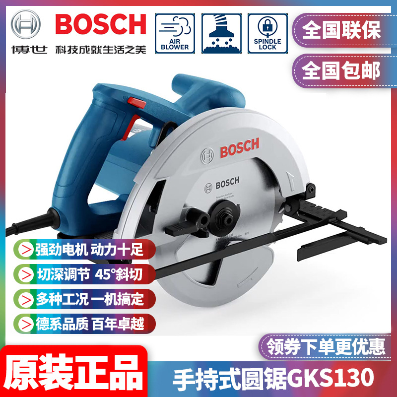 Bosch Bosch asli gergaji bundar elektrik GKS130, gergaji listrik pekerjaan kayu, mesin pemotong genggam multifungsi, dekorasi pemotong