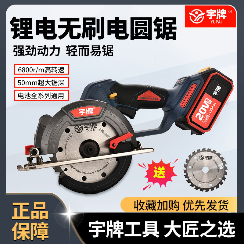 Yu brand gergaji bundar elektrik Lithium tanpa sikat, cakram gergaji bundar elektrik dapat diisi ulang mesin pemotong portabel kapasitas besar