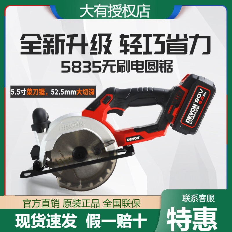 Gergaji bundar listrik baterai lithium Dayou 5835 tanpa sikat, dapat diisi ulang, multifungsi, portabel, gergaji bundar, gergaji potong, alat pertukangan kayu