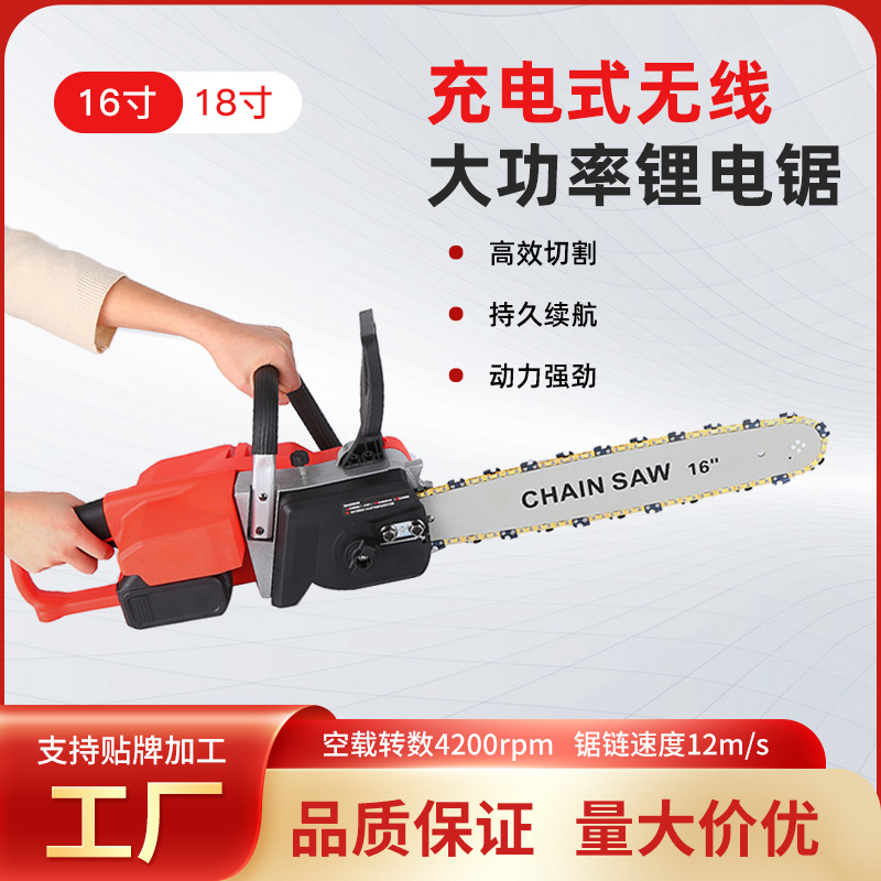 Gergaji listrik Lithium 16 inci 12 inci, gergaji listrik rumah tangga portabel dapat diisi ulang, gergaji pemotong pohon pangkas tangan tunggal log kecil