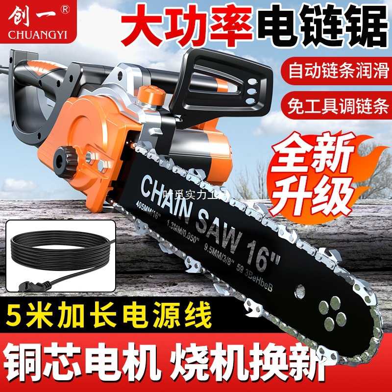 Chuangyi Gergaji Rantai Listrik Rumah Tangga Gergaji Genggam Tenaga Tinggi Penebang Kayu Gergaji Rantai Kecil Jinjing Mesin Pemotong Pohon
