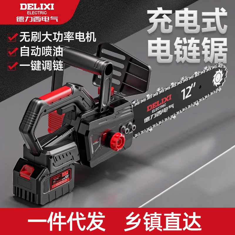 Delixi gergaji listrik genggam kecil rumah tangga, gergaji listrik baterai lithium daya tinggi memotong pohon gergaji rantai dapat diisi ulang