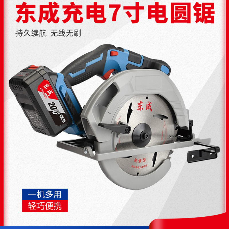 Dongcheng gergaji bundar listrik Lithium, mesin pemotong tanpa sikat dapat diisi ulang Dongcheng gergaji kayu portabel 20V gergaji bundar kecil