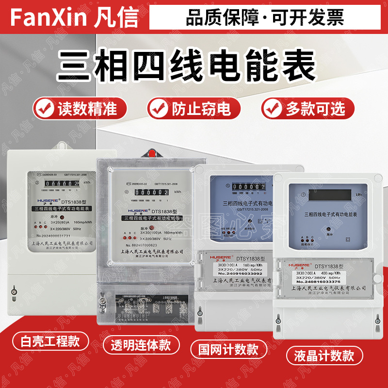 Shanghai People's Meteran Daya Tinggi Tiga Fase Empat Kabel 380V Tiga Fase Listrik Meteran Listrik Tiga Fase