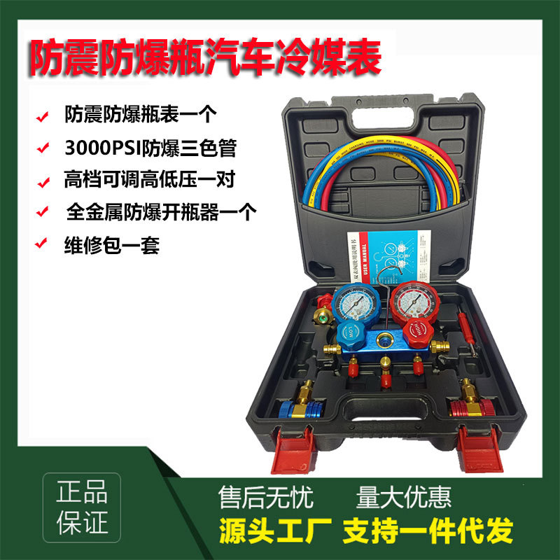Pabrik R134a pendingin mobil fluorometer salju jenis pengukur tekanan refrigeran meteran ganda katup AC alat fluorinasi cocok