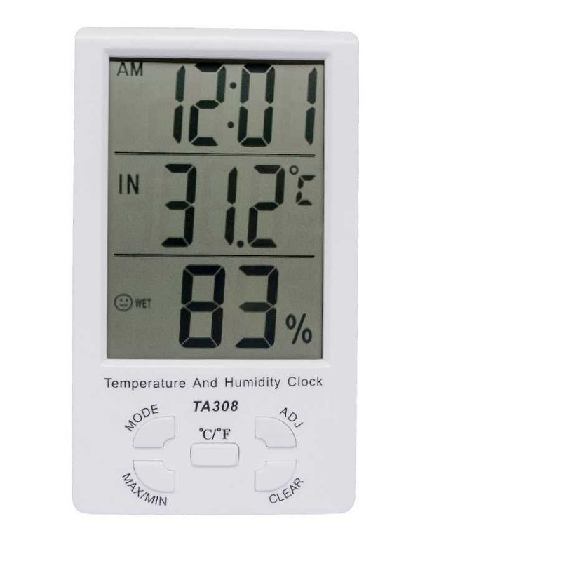 Pengukur suhu dan kelembapan Digital TA308, layar besar dengan waktu rumah tangga