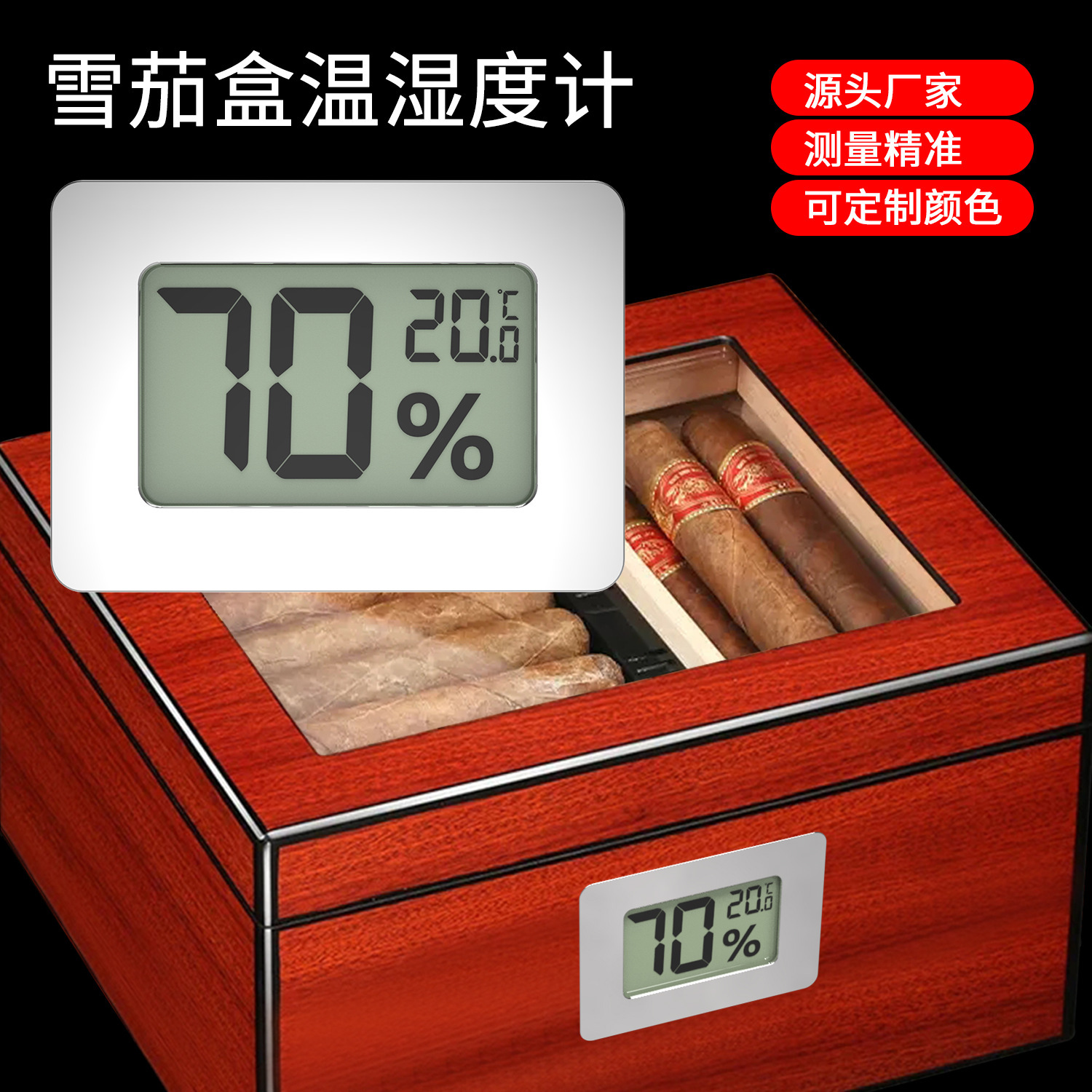 Kotak cerutu higrometer persegi elektronik higrometer perak tertanam cerutu kabinet cerutu higrometer