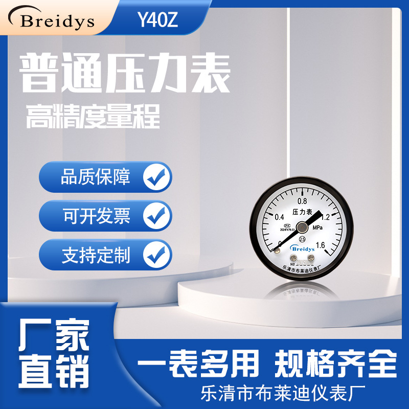 Pengukur tekanan biasa aksial Y40Z, pengukur tekanan pneumatik PT1/8, pengukur hidrolik 0-10KG