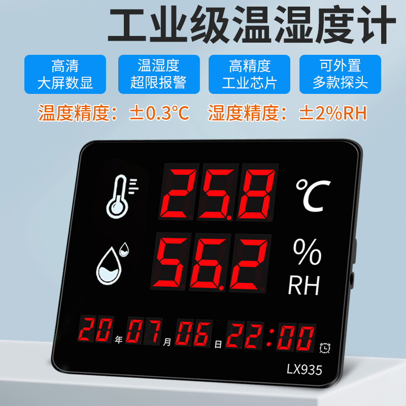 Meteran tampilan suhu dan kelembaban, instrumen pengisian suhu dan kelembaban dalam ruangan industri presisi tinggi dipasang di dinding dengan alarm LX935