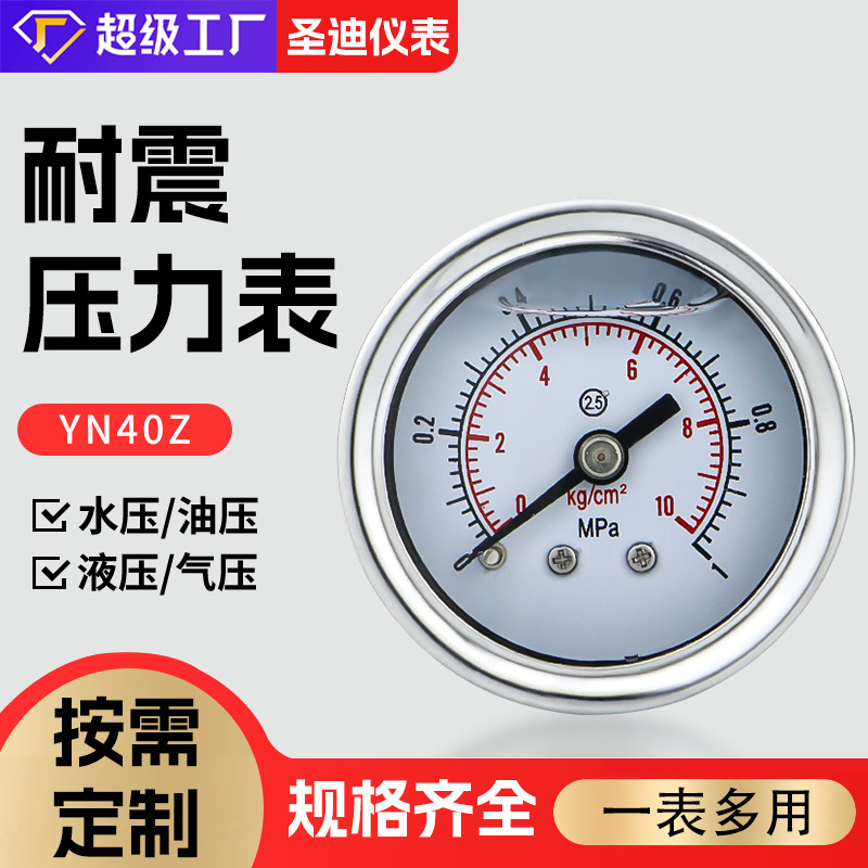 Pengukur tekanan tahan guncangan tanpa tepi aksial yn40z baja tahan karat tahan guncangan tekanan udara tekanan air tekanan oli vakum pengukur tekanan tahan guncangan