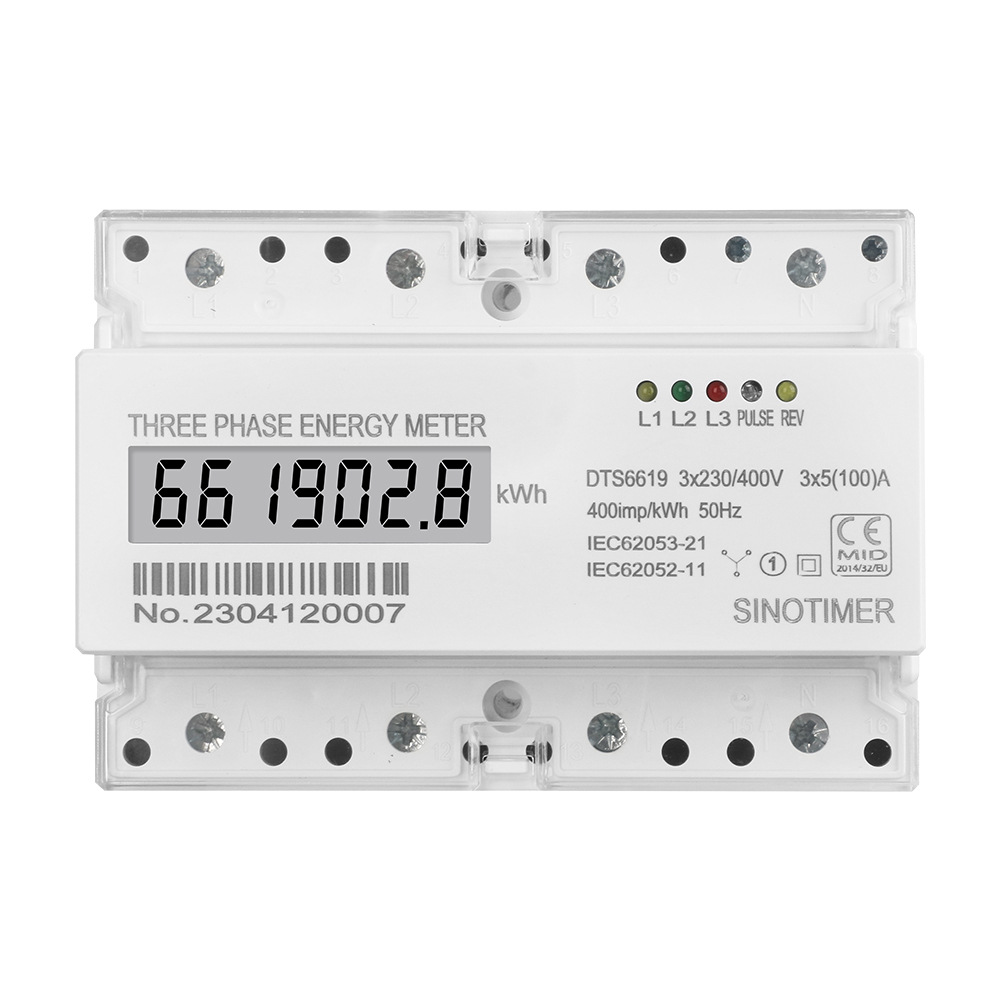 DTS6619-016 tiga fase tampilan LCD 380V tipe rel watt-jam meter 7p pengukur energi dengan komunikasi RS485