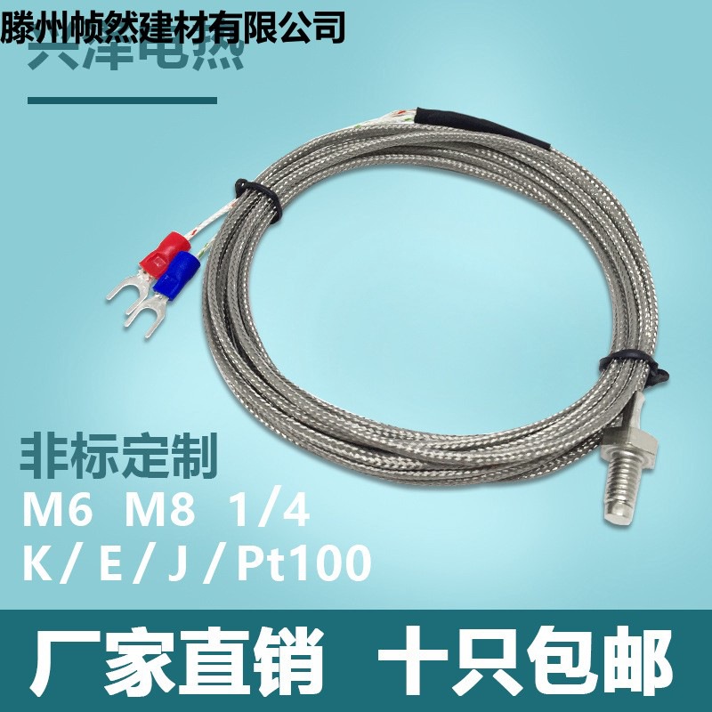 M6 Sekrup Tipe Termokopel Tipe K Tipe E Tipe M8 Sensor Suhu Tahan Panas Kabel Kontrol Suhu Sensor Suhu