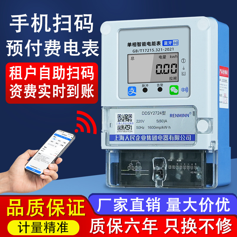 Shanghai People's Prabayar Smart Meter Bluetooth Ponsel Scan Kode Isi Ulang Meter Jarak Jauh Fase Tunggal Rumah Sewa Rumah Tangga