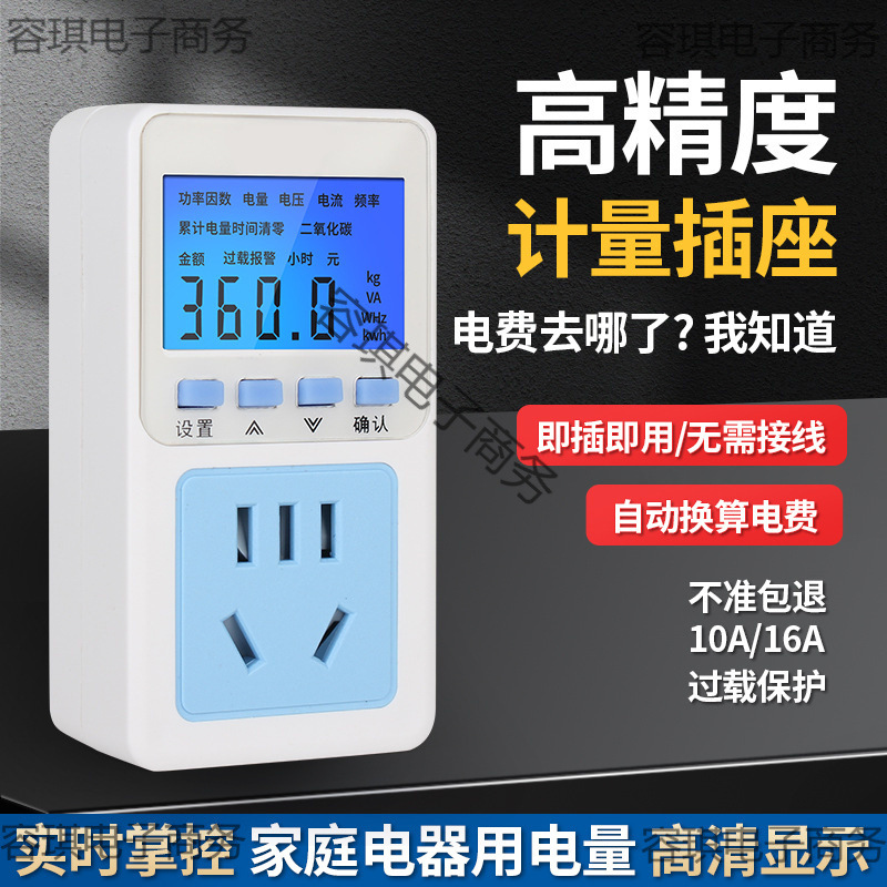 Stopkontak pengukuran daya stopper meter daya 10A16A steker listrik tampilan cerdas pemantauan daya AC rumah tangga