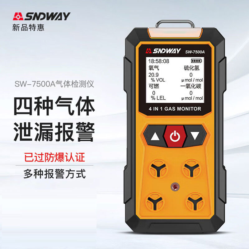 Detektor gas Shendawei, alat pengukur alarm empat dalam satu mudah terbakar beracun dan karbon monoksida gas berbahaya SW