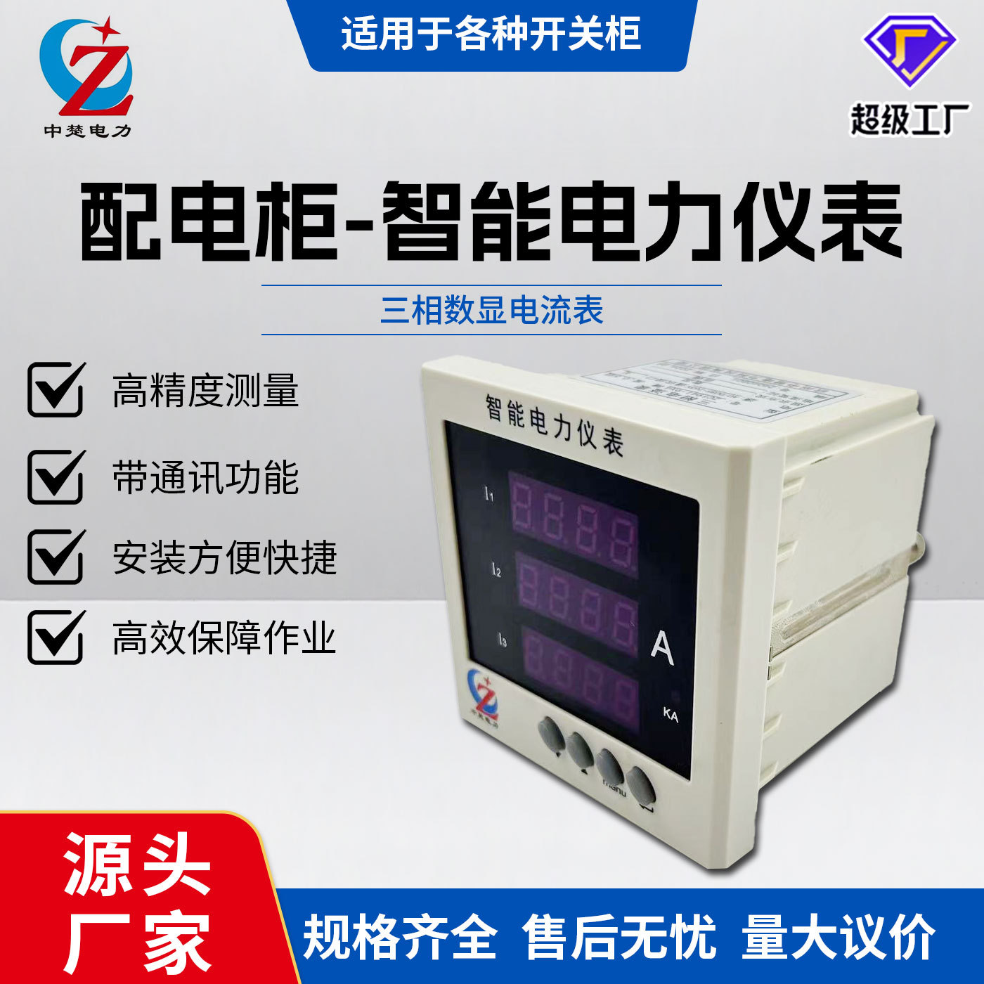 Zhongchu Electric Intelligent Power Meter Tiga Fasa Ammeter LCD Digital 67/76 Ukuran Lubang Opsional dengan RS485
