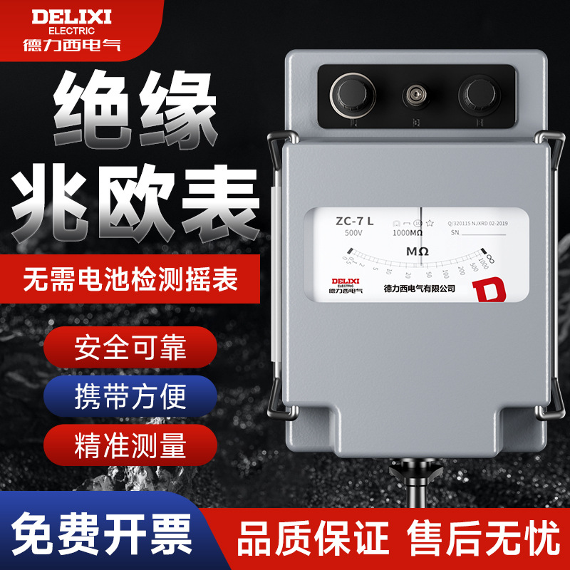 Delixi meteran memori ZC-7 jenis penunjuk cangkang aluminium pengocok anti-gangguan 500V meteran resistensi isolasi Aloi dioperasikan dengan tangan