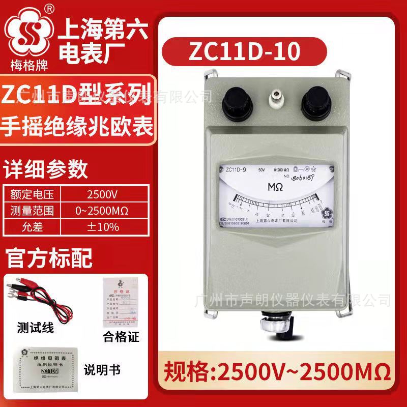Shanghai penguji resistensi insulasi ZC11D-10, pengukur memori 2500v merek Meg, pabrik meter keenam, penguji ketahanan insulasi