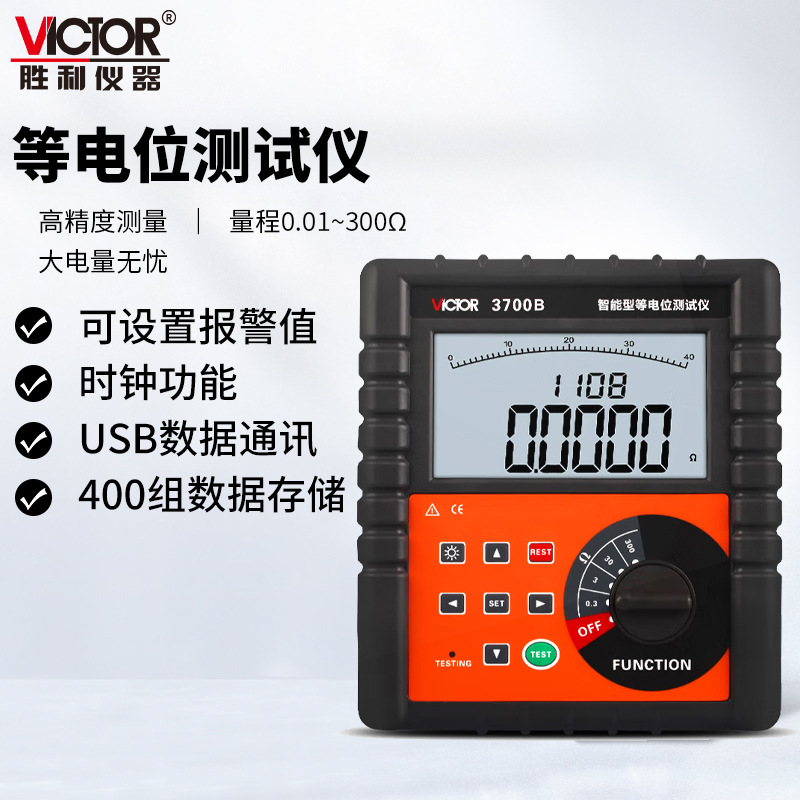 Shengli VC3700B tester equipotensial cerdas 0.01Ω ~ 300Ω DC penguji resistansi rendah