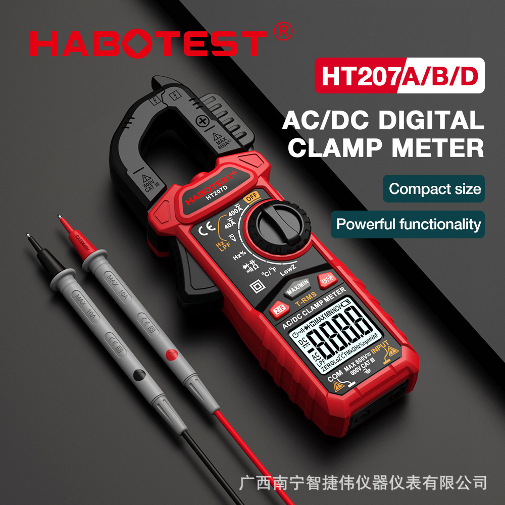 Multimeter klem digital Huabo HT207A/HT207D/HT207B, multimeter klem AC/DC versi bahasa Inggris