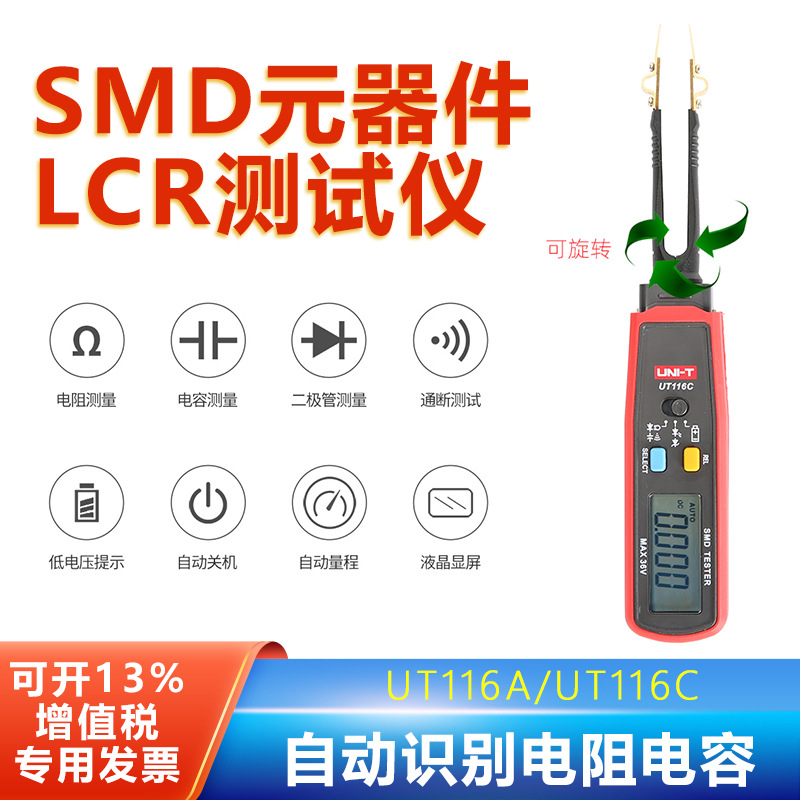 Unide UT116A/C klip uji komponen pendeteksi resistor kapasitor SMD Multimeter diode