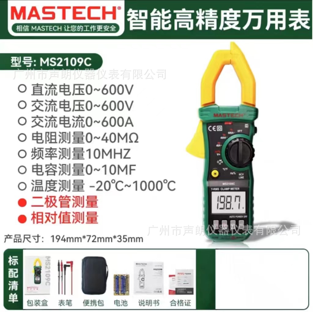 MS2109C Huayi Mastech ac 600A penjepit digital multimeter alat listrik khusus ammeter