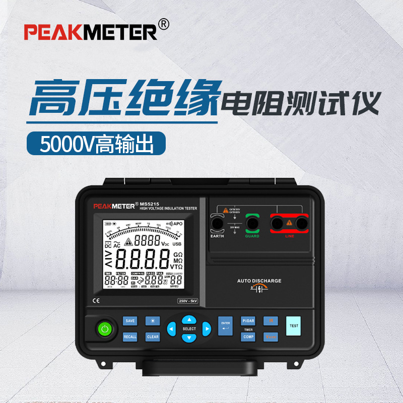 PEAKMETER Huayi MS5215 penguji ketahanan insulasi 5000v digital tegangan tinggi MEGOHMMETER pengocok ahli listrik