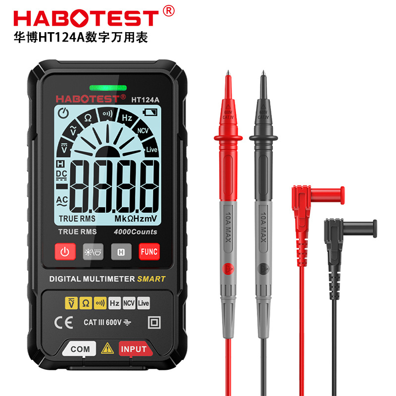 Huabo HT124A multimeter digital cerdas, pengukur listrik anti-bakar presisi tinggi