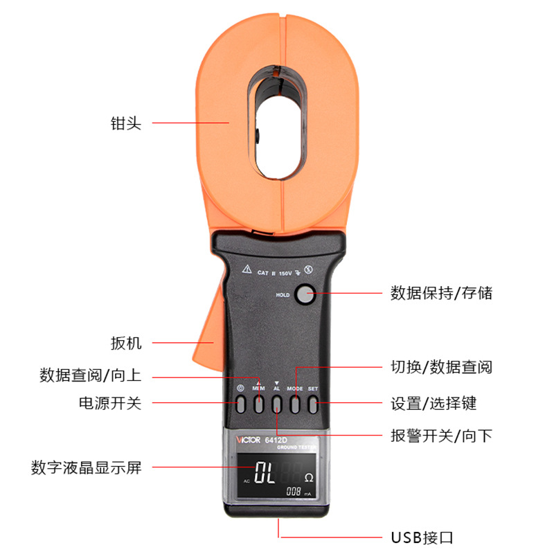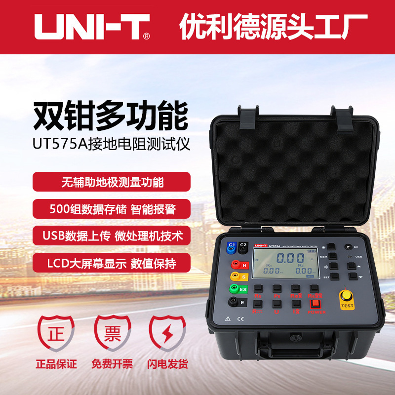 Produk industri unide UT575A elektroda tanah non-bantu mengukur klem ganda multi-fungsi penguji ketahanan terkubur