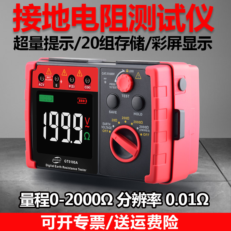 Pengukur daya tahan terkubur lightning GT5105A 2000 Ohm intelligence standar