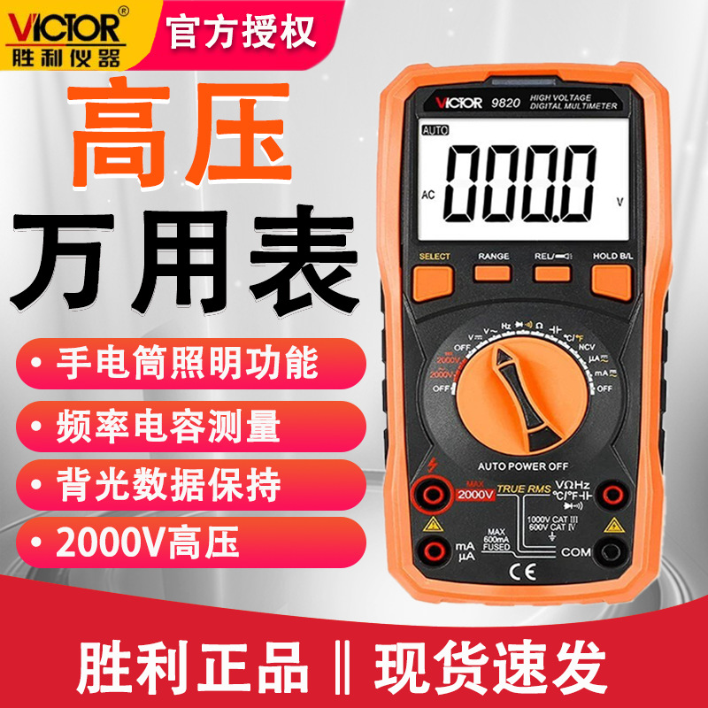 Victory VC9820 multimeter digital, multimeter digital tegangan tinggi AC/DC dan arus 2000V