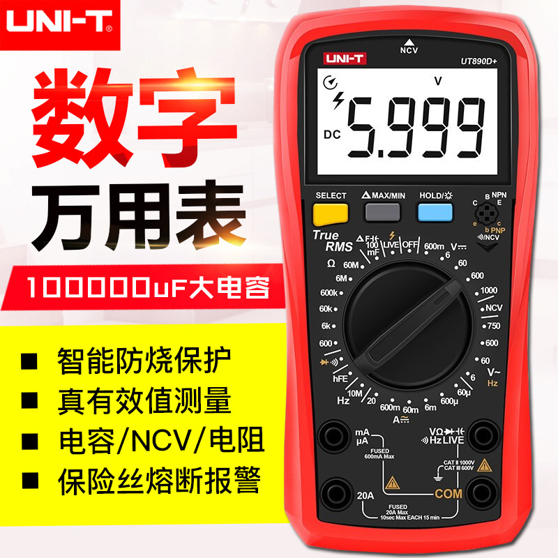 Unide multimeter presisi tinggi/UT89X/XD, Multimeter digital dengan tampilan digital universal pelindung listrik, multimeter anti bakar