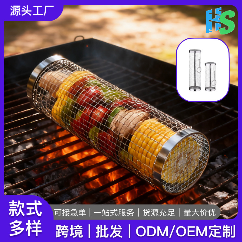 Jaring pemanggang barbekyu, lintas batas luar ruangan 304 baja tahan karat kandang asap BBQ jaring barbekyu berputar
