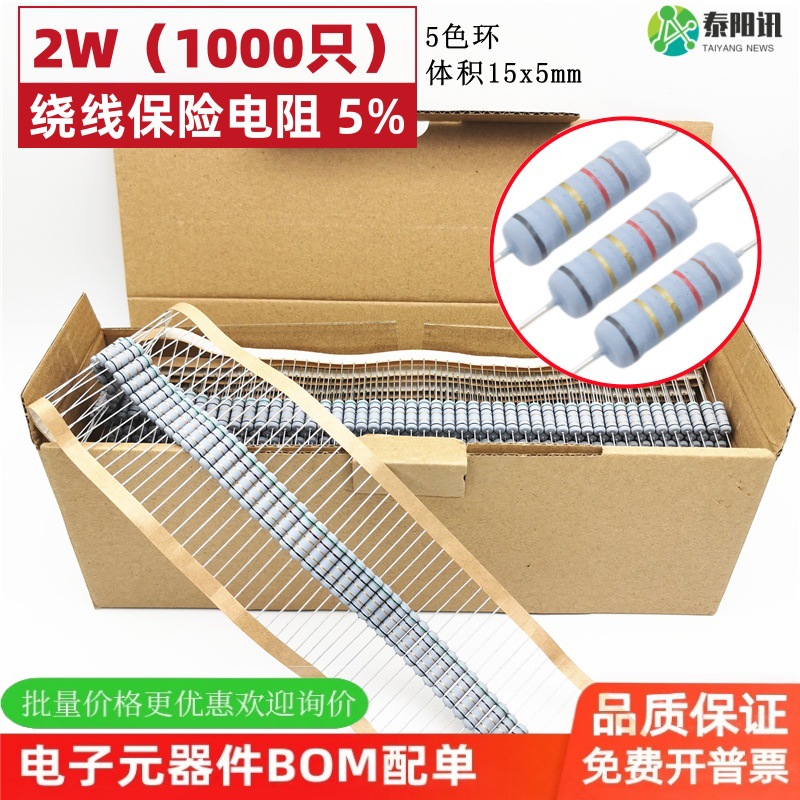 0.1R-470R 2W Plug-in belitan resistor KNP film oksida 5 warna cincin 5% 1000 pcs 1 kotak