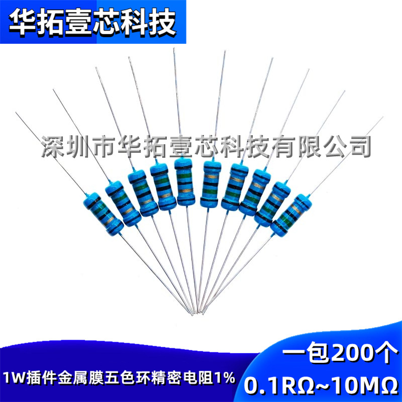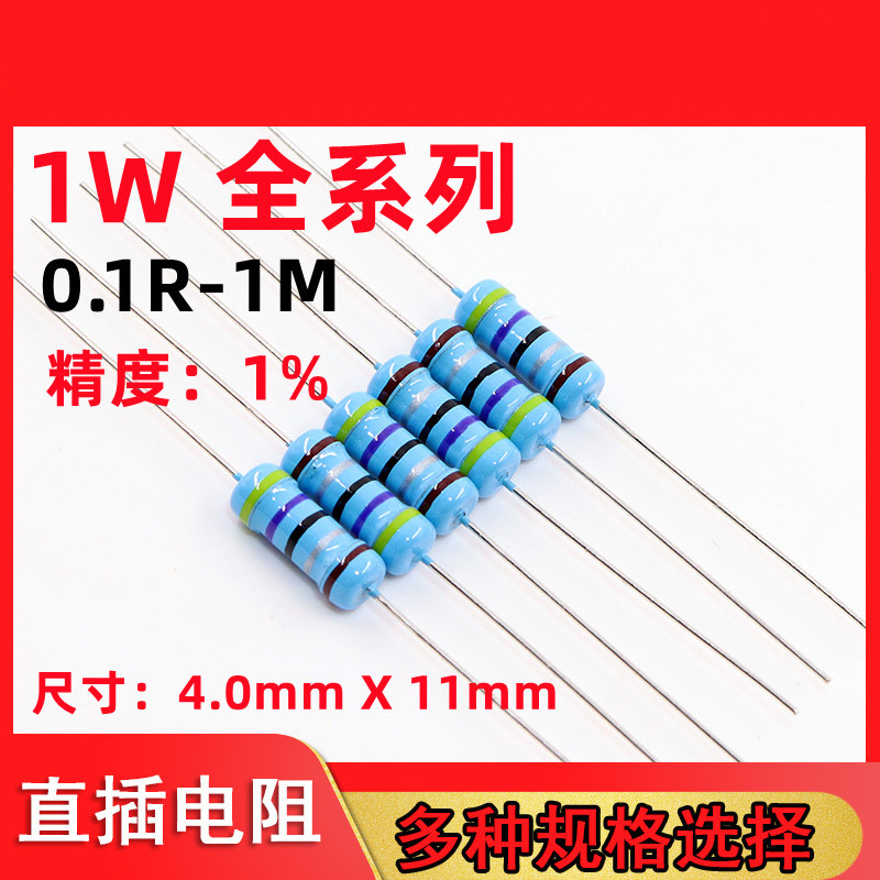 Pabrik langsung 1W film logam presisi resistansi 1% cincin lima warna resistor 1R-1M jumlah besar kaki besi Eropa