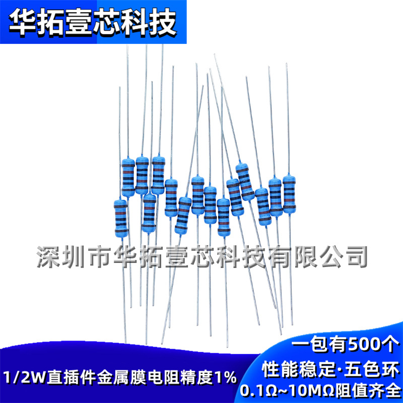 500 buah/pak 0.5W resistor film logam 1% 1R ~ 1m 1/2W resistor cincin warna 10R 100k plug-in