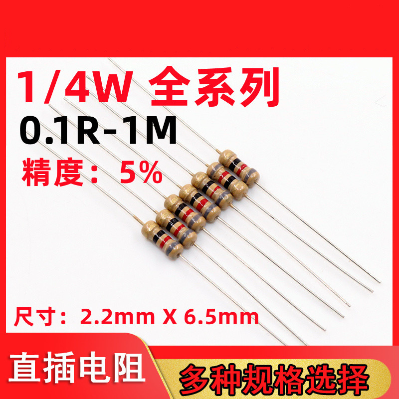 1/4W tahan film karbon presisi 5% seri penuh 1R ~ 1m euro 10R 470R 1k 2K 10K 100K 1m