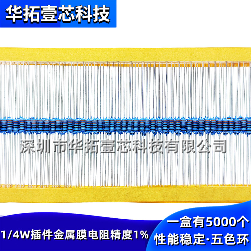 0.25W resistensi cincin warna, steker langsung film logam resistensi 1/4W 100K/120K/150K/180K ~ 910K