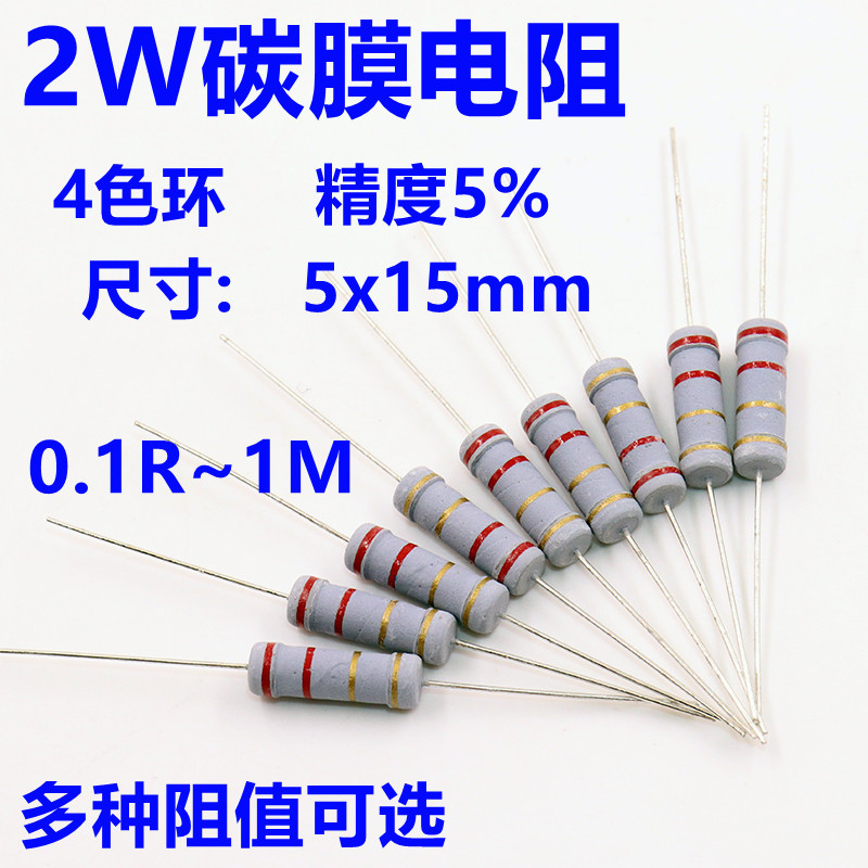 Resistor film karbon 2W, 4 cincin warna presisi 5% 0.1R ~ 1m euro 1R 22R 100R 1K 10K 100K 1m