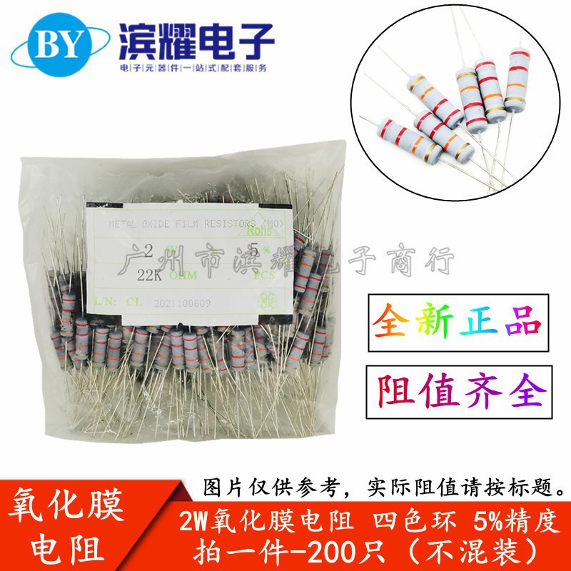 2W tahan film karbon 33k 36K 39K 43K 47K 51K 56k lapisan oksida 5% Euro 200 buah