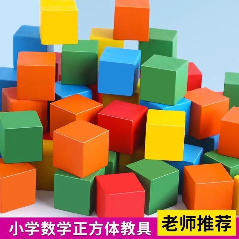 Blok bangunan tiga dimensi kayu padat kubus berwarna kayu kubus pengajaran matematika persegi kecil tiga dimensi alat bantu mengajar geometris