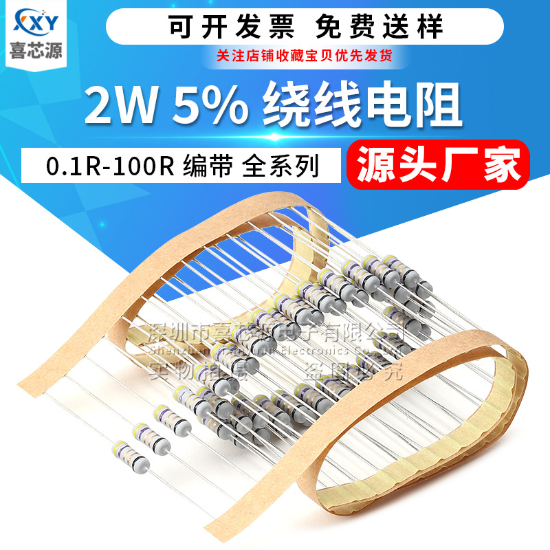 2W Resistor Langsung Lulung 0.1R/0.2/0.47/1R/3.3/10/22R-100R 5% Seri Penuh Rajut