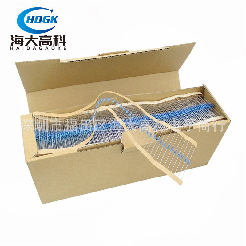 Seri penuh 1/4W resistensi steker langsung 0.25W 1% 5 cincin warna resistor film logam kepang kotak 5000