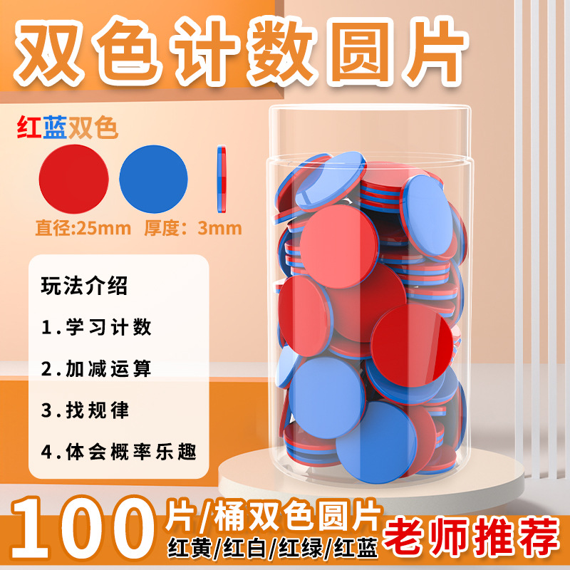 Merah dan biru dua warna wafer 25mm plastik lembaran hitung taman kanak-kanak sekolah dasar kelas satu alat peraga matematika